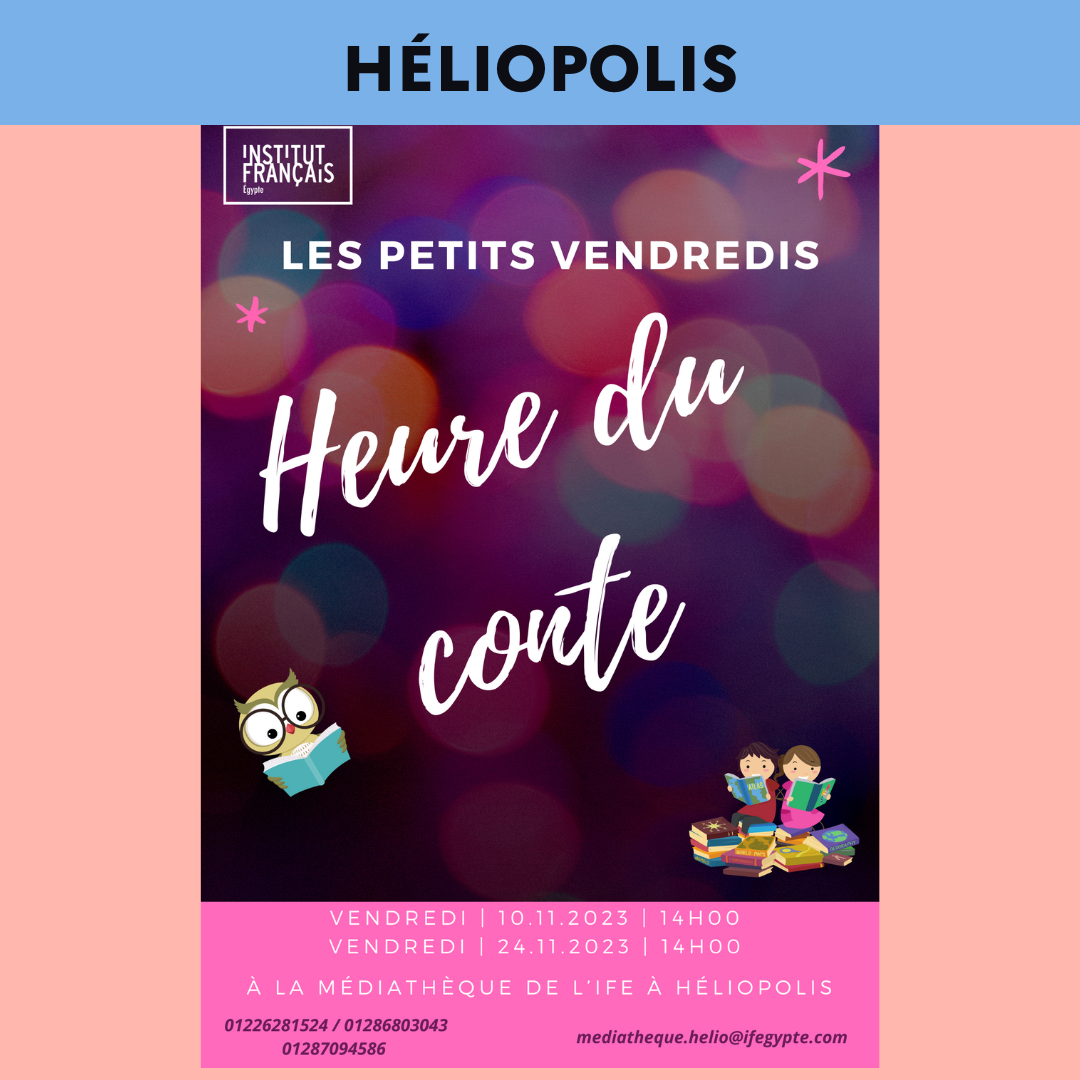 نشاط مجاني مخصص لألطفال من عمر 7 إلى 14 سنة الذين لديهم اشتراك في المكتبة وطلبة دورات األطفال. للتسجيل يمكنكم إرسال بريد إلكتروني إلى: com.ifegypte@helio.mediatheque أو االتصال بنا هاتفيا على
