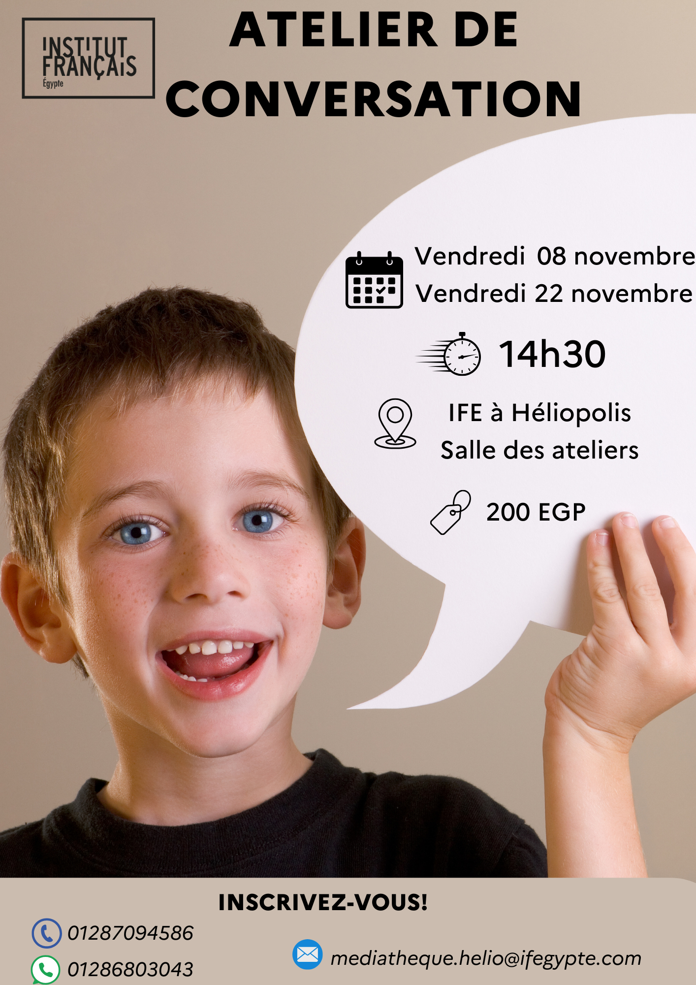 🎉 Inscrivez-vous dès maintenant ! Les places sont limitées, ne tardez pas à réserver une place pour votre enfant. Pour plus d’informations et pour inscrire votre enfant, contactez-nous par mail à: mediatheque.helio@ifegypte.com , ou par téléphone aux numéros suivants : 01287094586 / 01286803043